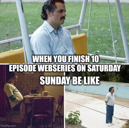 The next meme is about the weekend. Friends, sometimes you plan to watch a long web series over the weekend. You think that it's so long and has so many episodes that both days will pass comfortably. But since Saturdays are completely free, you finish the entire web series that day. And then your Sunday ends up like this: when you don't have any plans, the entire day unfolds just like the one shown in the meme below.